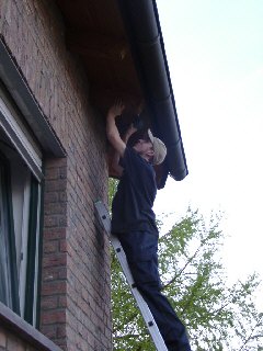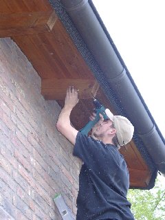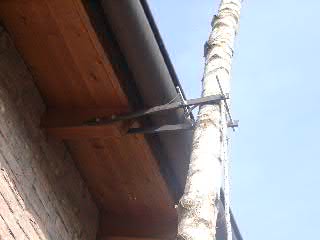 Um die Regenrinne zu schonen hat Volker eine Maibaumhalterung gebaut. |
