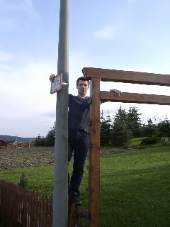 Thomas hat Glück Zur stabile Befestigung des Maibaumes eignet sich ein Torbogen. |
