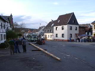 Jung und Alt schaut den Vorbereitungen zum Aufstellen des Maibaumes zu. |