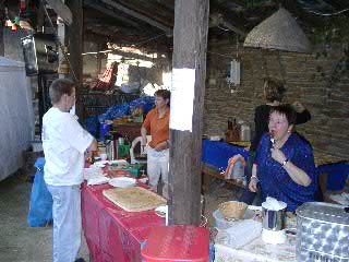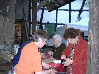 Neben Kuchen, Broten mit Schmalz, Blutwurst und Leberwurst, wird auch Spiessbraten ausgegeben.
