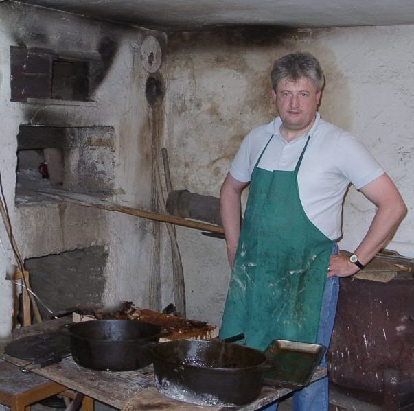 Der Spiessbraten wird auch im “Alten Backes” zubereitet. Werner Kasel bei der Arbeit.