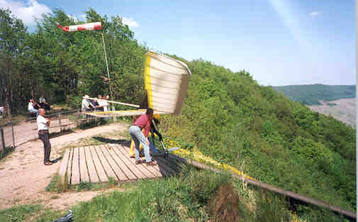 - Der Windenstart (wie bei den Segelfliegern wird der Drachenflieger mit einem Seil einer Seilwinde hochgezogen)