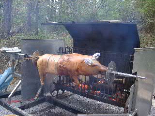 Fachmänner vom Saubrenner-Verein Schalkenbach sorgten für besten Schweinebraten.