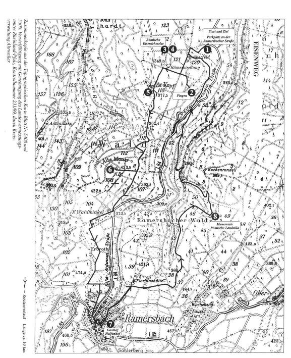 Nach meinen Erfahrungen ist es besser die Strecke in umgekehrter Richtung zu begehen, also mit Start in Ramersbach an Punkt 7 .